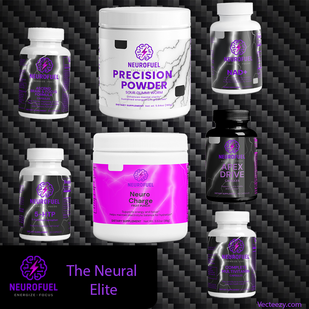 What's Included: (Individual Value: $222) ✓ Neuroptimal ($32) ✓ NeuroFuel NAD+ ($40) ✓ Precision Powder ($35) ✓ Neuro Charge (Fruit Punch) ($35) ✓ 5-HTP ($20) ✓ Apex Drive ($40) ✓ Complete Multivitamin ($20)