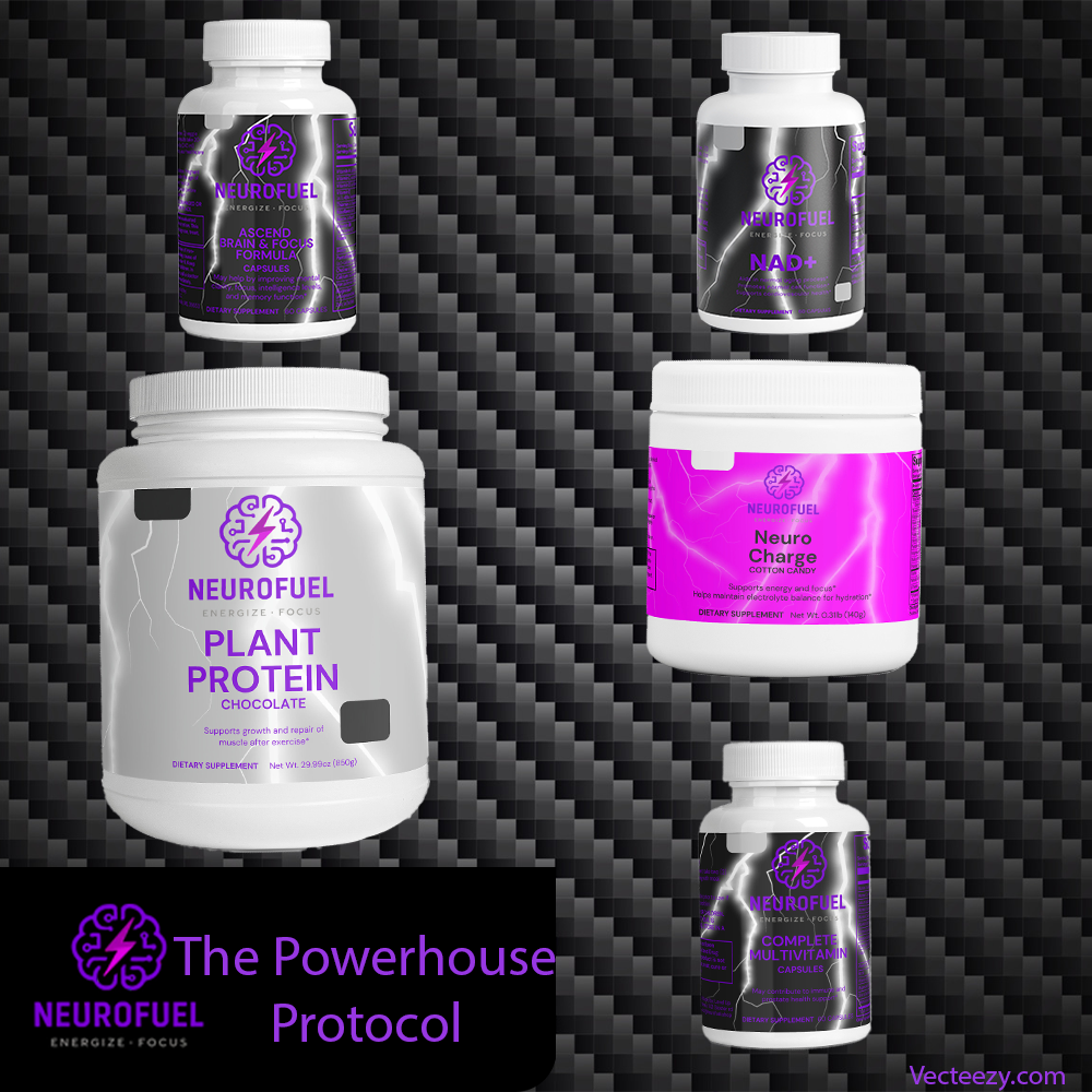 What's Included: (Individual Value: $190) β Complete Multivitamin ($20) β Neuro Charge (Cotton Candy) ($35) β NeuroFuel NAD+ ($40) β Neuroptimal ($32) β Plant Protein (Chocolate) ($40)
